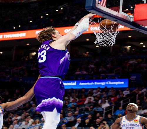 末节爵士多点开花,打出14-2的进攻高潮,从落后4分到105-97领先8分。霍姆格伦连拿5分,亚历山大突破打进,雷霆追到106-107只差1分。马尔卡宁打板命中,留给雷霆3秒钟时间。亚历山大压哨中距离稳稳命中,将比赛拖入到加时。