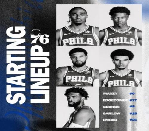 首发阵容方面,76人队这边,三巨头均可出战,排出的最新首发五人组为:保罗-乔治、巴洛、马克西、恩比德、VJ-埃奇库姆;骑士队这边,斯特鲁斯(左脚手术)和迪恩-韦德(左膝挫伤)缺战,首发阵容则为:泰森、米切尔、阿伦、莫布利、加兰。