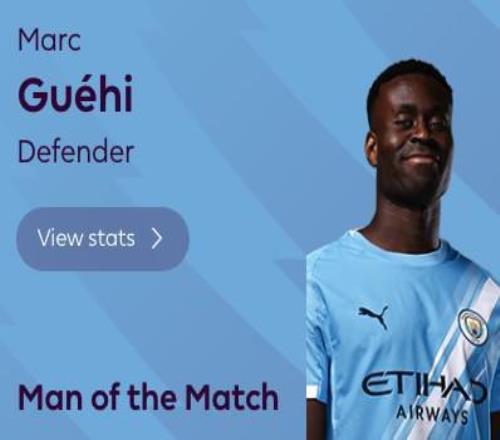 首秀+零封,格伊当选曼城vs狼队英超官方全场最佳球员